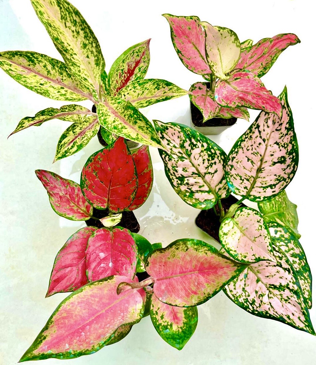 Aglonema Combo - 5 plants- With Pot - zircon, night sparkle, china red, anjuman, eileen
